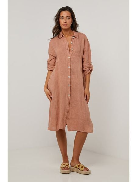 sukienki le monde du lin sukienki bez rękawów odzież damska le monde du lin różowe sukienki sukienki bez ramiączek sukienki ze sklepu limango.pl sukienki z klasycznym kołnierzykiem sukienki midi sukienki bez kołnierzyka odzież damska limango.pl