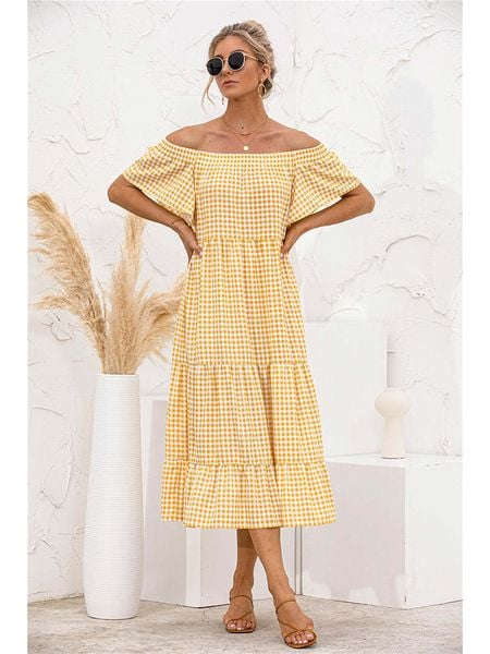 sukienki maxi odzież damska ariel tesoro sukienki z falbankami odzież damska limango.pl żółte sukienki sukienki ariel tesoro sukienki bez rękawów sukienki z kołnierzem typu carmen sukienki bez kołnierzyka białe sukienki