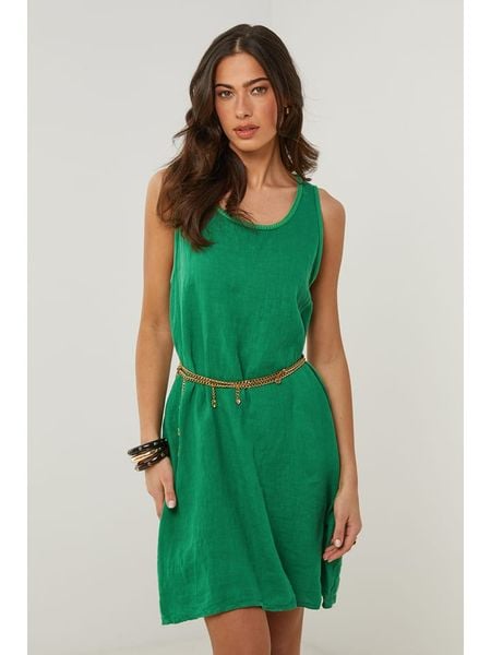 zielone sukienki sukienki le monde du lin odzież damska limango.pl odzież damska le monde du lin sukienki mini sukienki z dekoltem na plecach sukienki z okrągłym kołnierzem sukienki ze sklepu limango.pl sukienki bez rękawów sukienki bez ramiączek