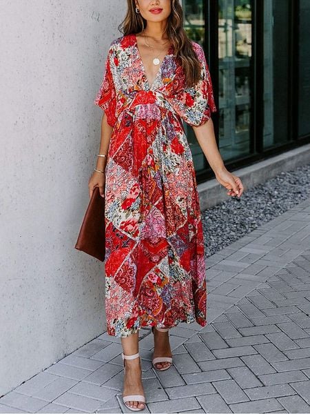 – dekolt: V- krój rękawów: nietoperz- długość rękawa: 3/4- dolny brzeg: z rozcięciem- krój: luźny- wzór: na całościUwaga: Przy wyborze właściwego wariantu zaleca się korzystanie z tabeli rozmiarów.