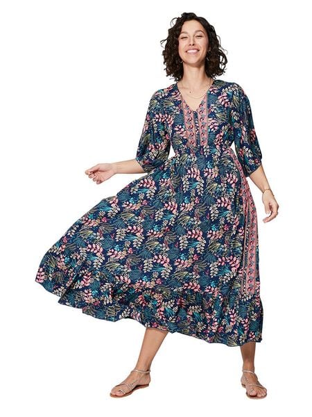 – dekolt: V- zapięcie: wiązanie na plecach- długość rękawa: 3/4- talia: elastyczna- dolny brzeg: z falbankami- krój: rozkloszowany- wzór: na całościWskazówka: Na metkach odzieży tej marki znajdują się rozmiary francuskie. Rozmiarówka została przez nas przeliczona. Podane do wyboru warianty rozmiarów odpowiadają standardowym europejskim rozmiarom konfekcji. Prosimy zapoznać się z zamieszczonym objaśnieniem rozmiarów.