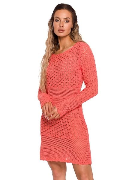 sukienki na co dzień różowe sukienki sukienki mini sukienki proste sukienki z okrągłym kołnierzem sukienki z długim rękawem sukienki bez kołnierzyka sukienki ze sklepu limango.pl odzież damska made of emotion odzież damska limango.pl