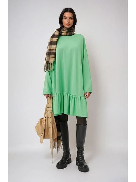 – dekolt: okrągły- dolny brzeg: z falbankami- krój: prosty- look: jednokolorowy