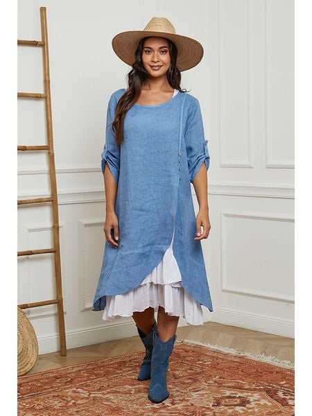 białe sukienki sukienki midi sukienki la compagnie du lin sukienki bez kołnierzyka odzież damska limango.pl sukienki ze sklepu limango.pl sukienki z falbankami odzież damska la compagnie du lin niebieskie sukienki sukienki bez rękawów
