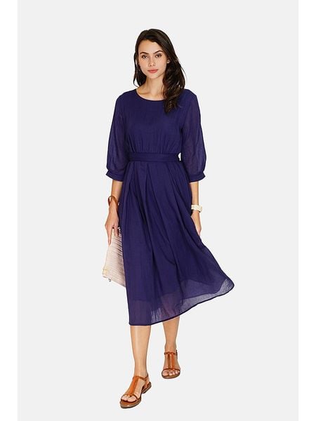 sukienki midi odzież damska le jardin du lin sukienki ze sklepu limango.pl sukienki bez ramiączek sukienki bez kołnierzyka sukienki bez rękawów odzież damska limango.pl niebieskie sukienki sukienki z okrągłym kołnierzem sukienki le jardin du lin