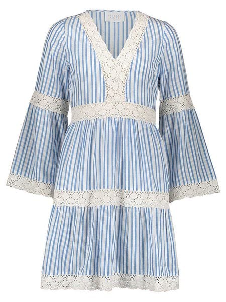– czysta bawełna- dekolt: V- krój rękawów: rozszerzany do dołu- detale: koronka- krój: rozkloszowany- wzór: paski