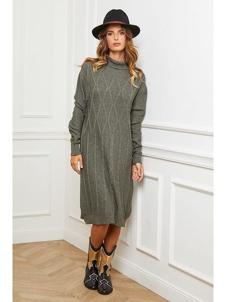 Joséfine Sukienka dzianinowa „Bernie” w kolorze oliwkowym rozmiar: M