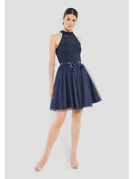 sukienki bez rękawów sukienki z dekoltem na plecach sukienki mini sukienki ze sklepu limango.pl niebieskie sukienki odzież damska limango.pl odzież damska swing sukienki swing sukienki bez ramiączek sukienki rozkloszowane