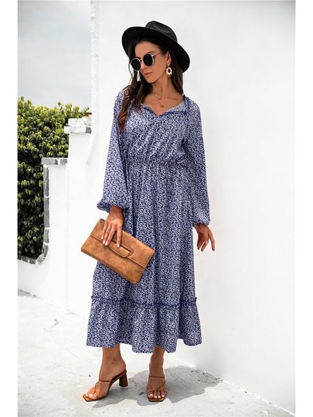 – dekolt: V- rękaw: bufiasty- zakończenie rękawów: elastyczne- talia: elastyczna- dolny brzeg: z falbankami- krój: luźny- wzór: kwiatowy