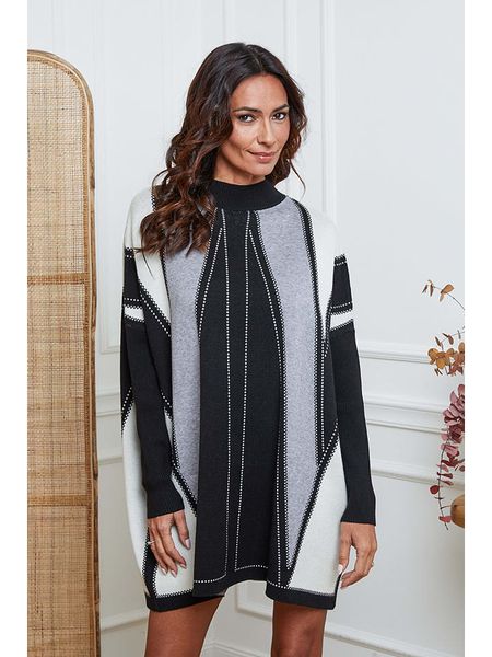 – z dodatkiem kaszmiru- dekolt: okrągły- ściągacz: dekolt, zakończenia rękawów- krój: prosty- wzór: mix- wzór splotu: ścisły