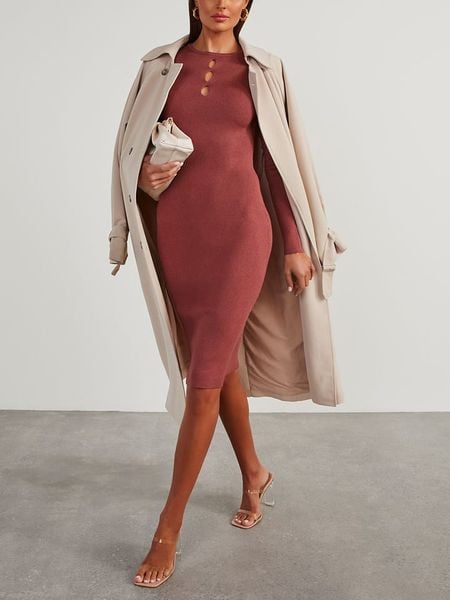 sukienki bez kołnierzyka sukienki z okrągłym kołnierzem sukienki midi sukienki bez ramiączek brązowe sukienki sukienki bez rękawów odzież damska la angels odzież damska limango.pl sukienki la angels sukienki ze sklepu limango.pl