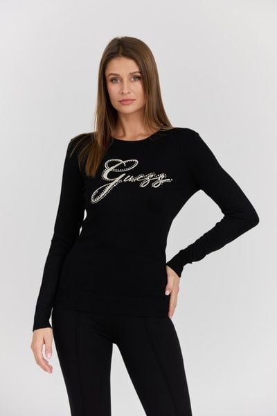 GUESS Czarny damski sweter Olive z haftowanym logo, Rozmiar S
