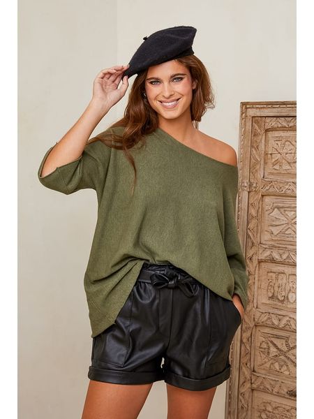 – dekolt: łódka- długość rękawa: 3/4- krój: luźny- look: jednokolorowy