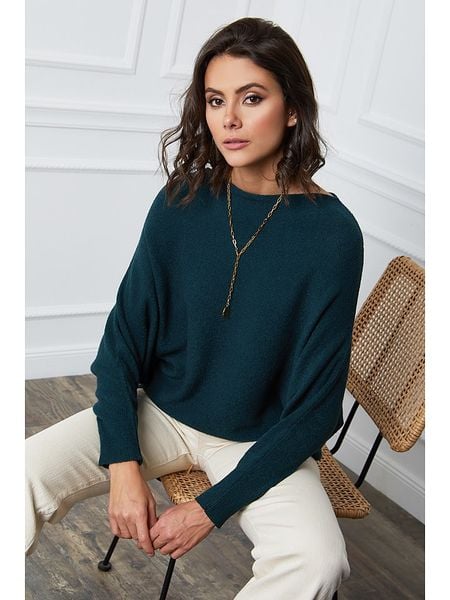 – z dodatkiem kaszmiru- dekolt: łódka- krój rękawów: motylek- ściągacz: zakończenia rękawów- krój: luźny- wzór: jednokolorowy