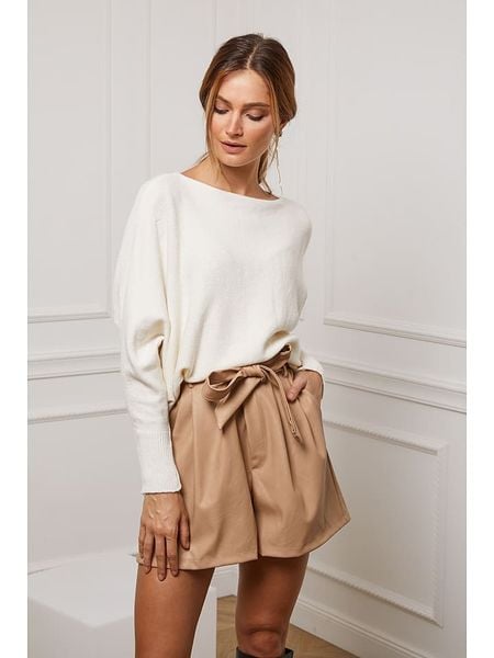 – z dodatkiem kaszmiru- dekolt: łódka- krój rękawów: nietoperz- ściągacz: zakończenia rękawów- krój: luźny- look: jednokolorowy