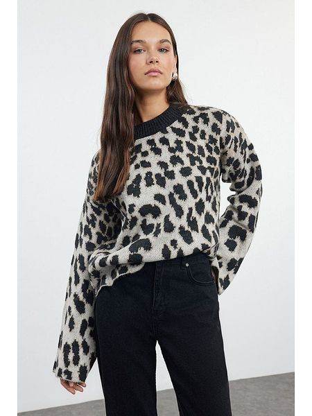 – dekolt: okrągły- krój: luźny- wzór: panterka