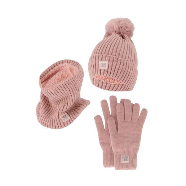 Damski Zimowy Zestaw Termiczny – Czapka + Rękawiczki + Komin – Różowy