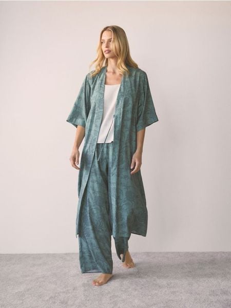 Wzorzysty szlafrok z wiskozy – jasny zielony