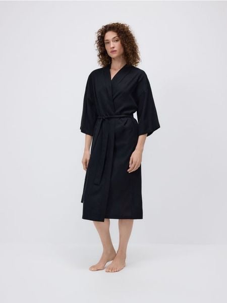 Szlafrok z dodatkiem lnu – czarny