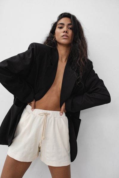 Szorty z delikatnej prążkowanej dzianiny w kolorze WARM BEIGE – ALPO-M
