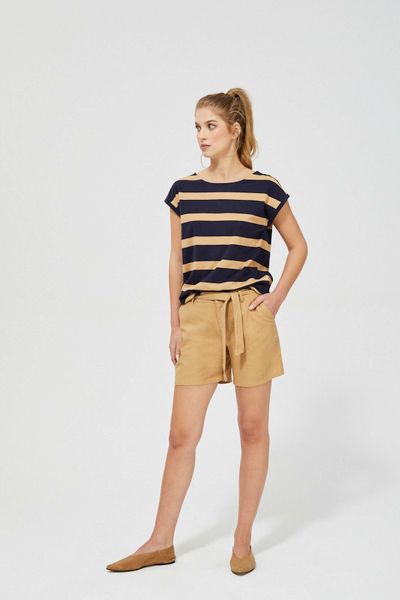 40%LEN, 30%BAWEŁNA, 20%POLIESTER, 10%WISKOZA Szorty, spodenki, camelowy, bez wzoru, gładki, len, wiązanie, ozdobny Pasek, do połowy uda, na co dzień, średni, Zapięcie wiązanie