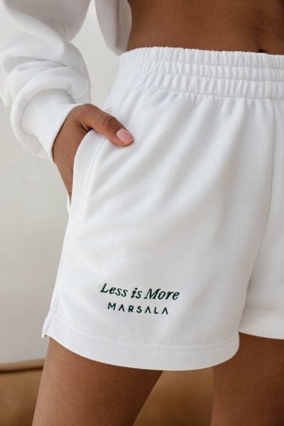 Szorty z dzianiny dresowej z haftem zielonym w kolorze CHEMICAL WHITE – LE PETIT-M