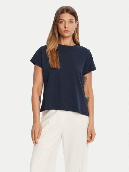 Tommy Hilfiger T-Shirt Gold Button WW0WW47455 Granatowy Regular Fit