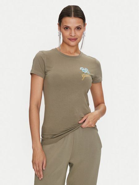 Guess T-Shirt Flowers W4YI30 J1314 Zielony Slim Fit