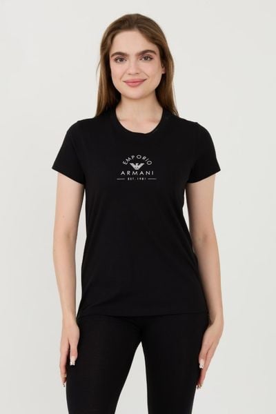EMPORIO ARMANI Czarny damski t-shirt Uni Logo Printe, Rozmiar M