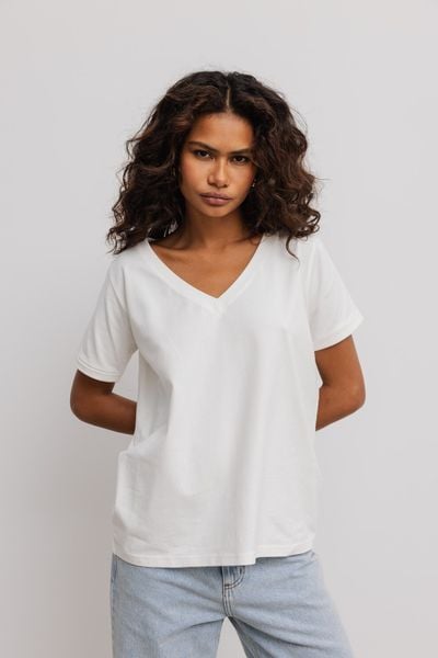 T shirt z dekoltem w kształcie V w kolorze ECRU- V NECK-XL