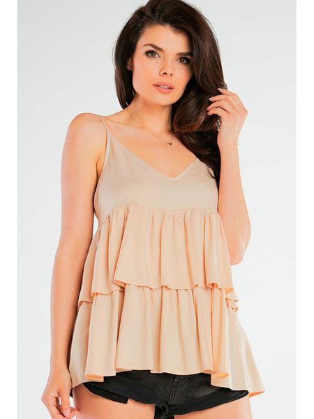 topy bez kołnierzyka topy ze sklepu limango.pl topy awama topy bez rękawów topy z falbankami odzież damska limango.pl topy bez ramiączek odzież damska awama brązowe topy