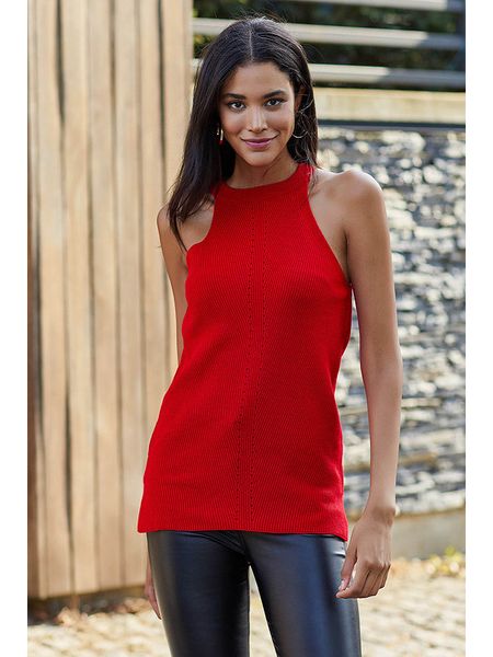odzież damska milan kiss topy bez rękawów topy bez kołnierzyka topy milan kiss topy z okrągłym kołnierzem odzież damska limango.pl topy ze sklepu limango.pl czerwone topy topy bez ramiączek