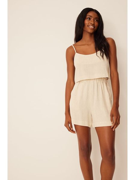 – z dodatkiem lnu- ramiączka: regulowane- dekolt: okrągły- krój: cropped- look: jednokolorowy