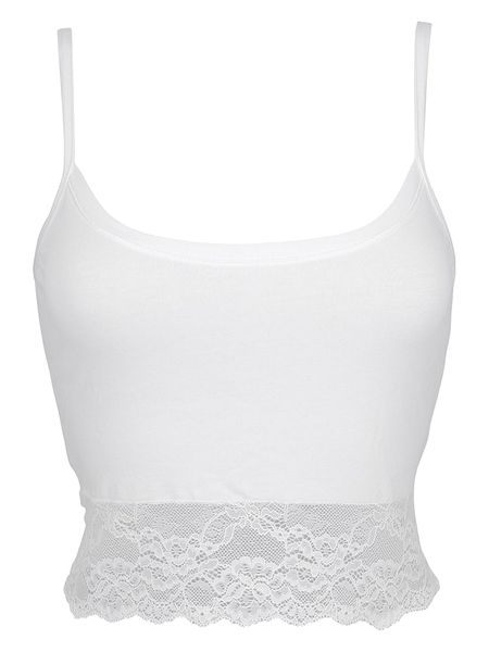 – ramiączka: wąskie- dekolt: okrągły- detale: koronka- krój: cropped- look: jednokolorowy