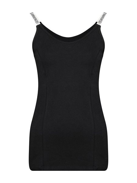 – ramiączka: wąskie- dekolt: okrągły- krój: wąski- nadruk: logo- look: jednokolorowy