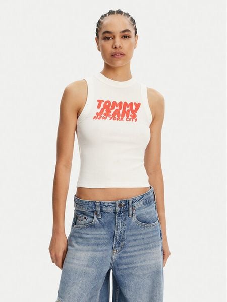 Tommy Jeans Top DW0DW21339 Écru Slim Fit