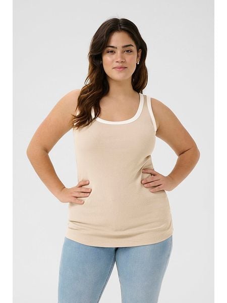 brązowe topy topy bez kołnierzyka odzież damska limango.pl topy bez rękawów topy kaffe curve topy bez ramiączek odzież damska kaffe curve topy ze sklepu limango.pl topy z okrągłym kołnierzem