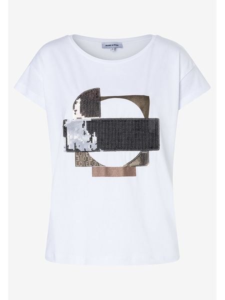 – dekolt: okrągły- krój: prosty- nadruk: w formie napisu- wzór: graficzny- detale: cekiny