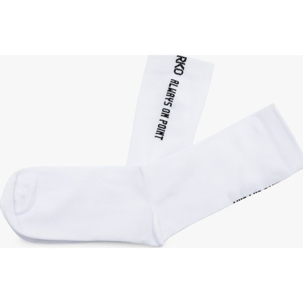 Skarpety bawełniane damskie w kolorze białym z napisami w kolorze czarnym.Elastyczny ściągacz.Skład: bawełna certyfikowana Oeko Tex 75%, poliamid 20%, elastan 5%