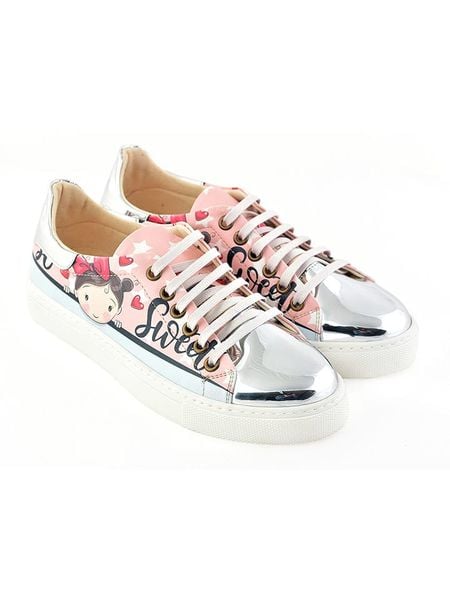 Goby Skórzane sneakersy w kolorze srebrno-jasnoróżowym rozmiar: 40