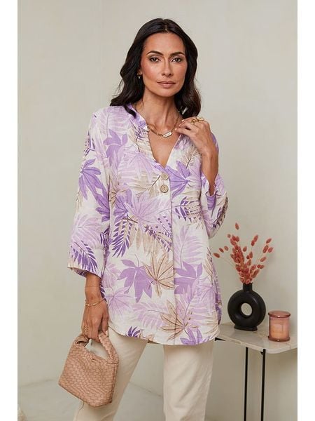Le Monde du Lin Lniana tunika w kolorze kremowo-fioletowym rozmiar: 40/42